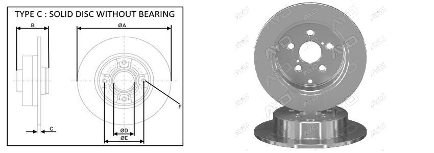 Диск тормозной задний Toyota Avensis (_T25_) (01/03-11/08) APPLUS APLUS