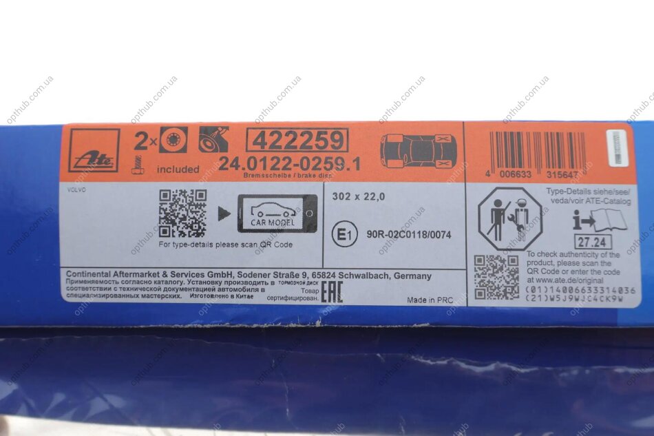 - ATE 24.0122-0259.1 подходит к маркам/моделям авто: