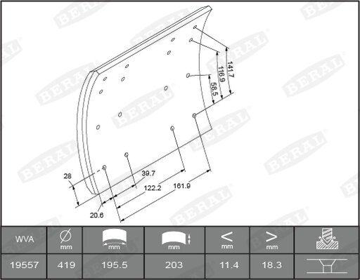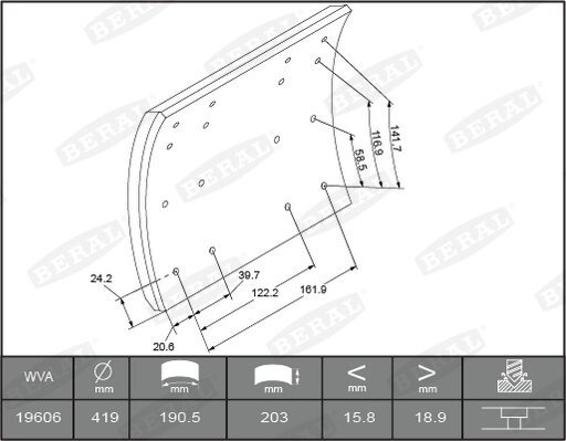 Комплект тормозных ботинок, барабанные тормоза. BERAL