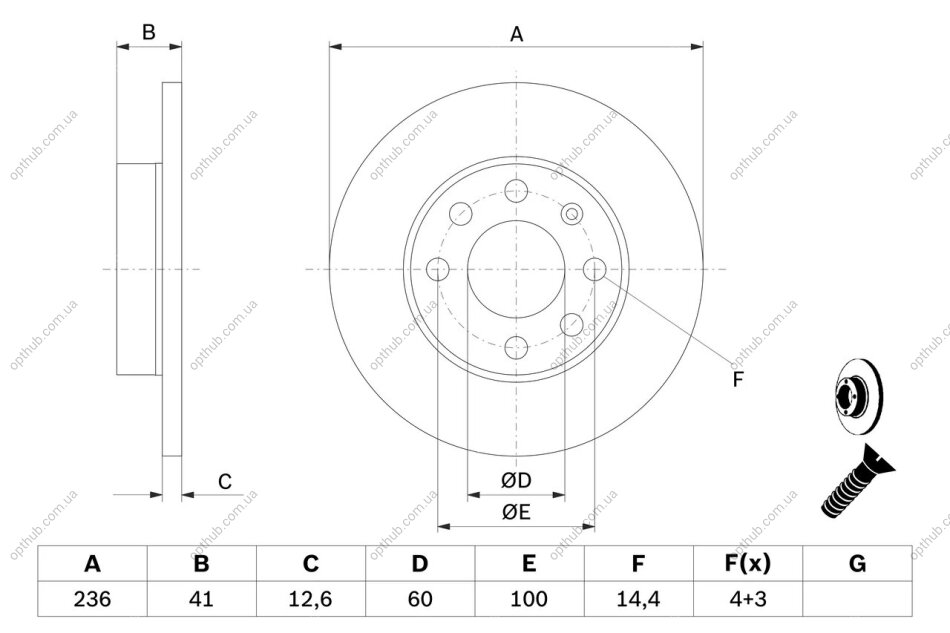 Диск гальмивний (передний) Opel Astra F 91-05/Corsa A/B 82-00/Kadett E 79-93 (236x12.6) UA63 BOSCH
