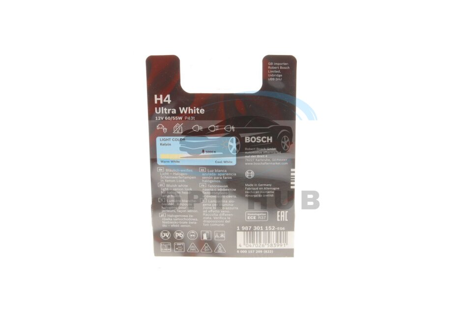 Автолампа H4 12V 60/55W P43t (opt-om) BOSCH