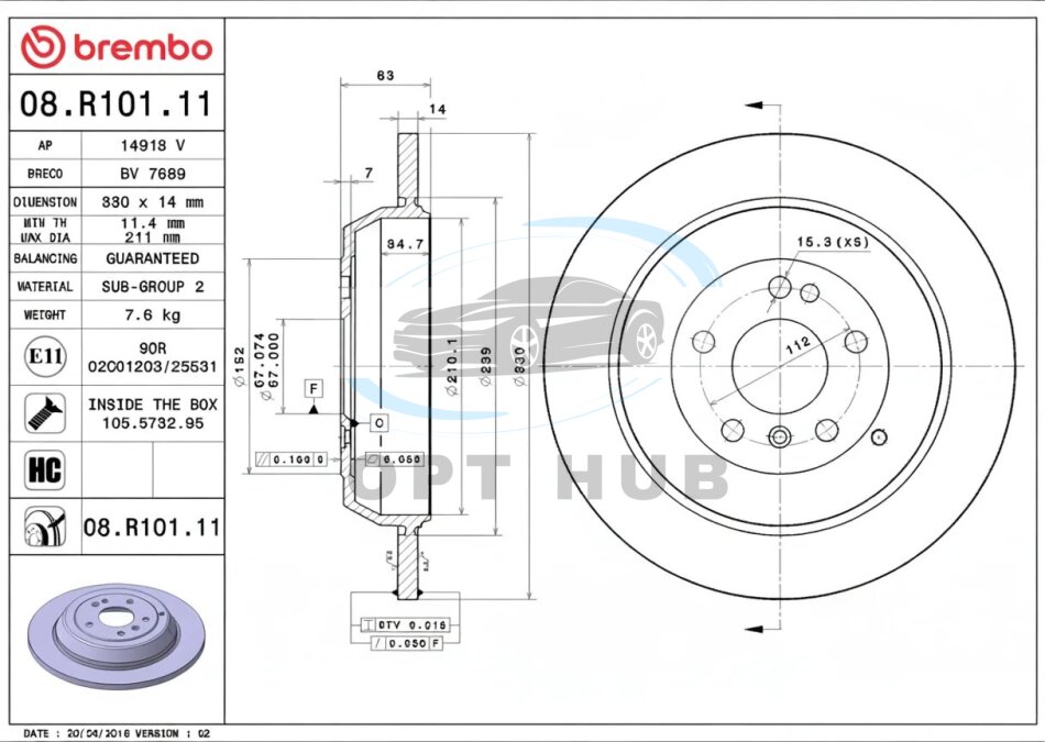 - BREMBO 08.R101.11 подходит к маркам/моделям авто: