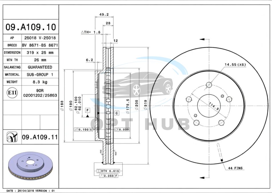 - BREMBO 09.A109.11 подходит к маркам/моделям авто: