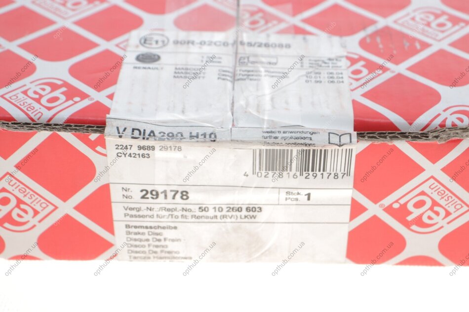 Диск гальмивний (передний) Renault Mascott 99- (290x26) (opt-om) FEBI BILSTEIN