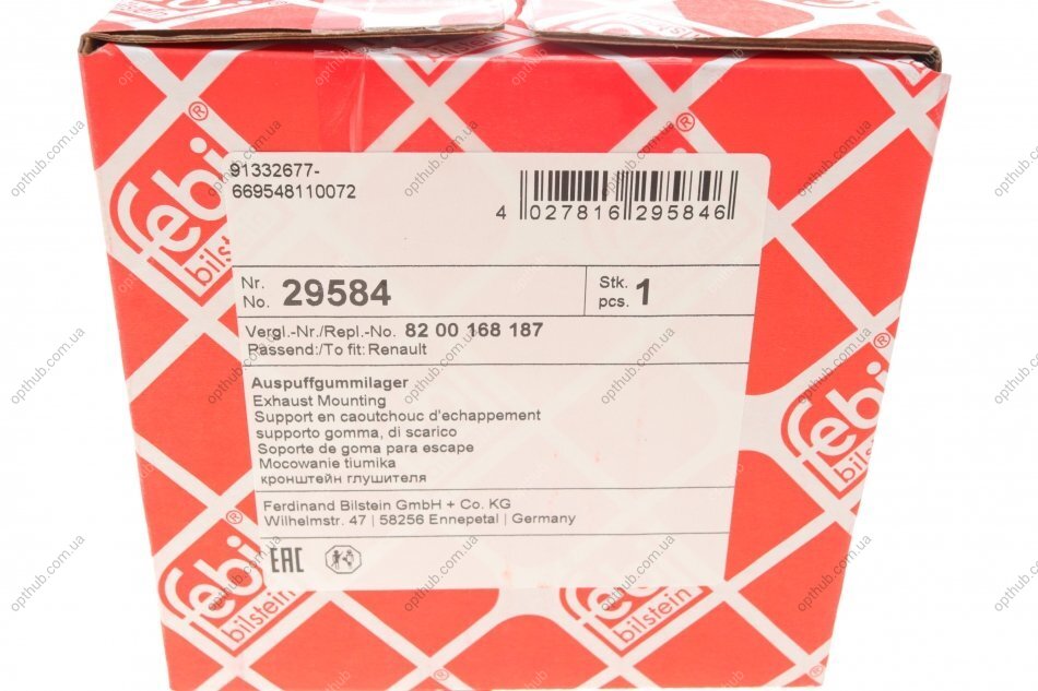 - FEBI BILSTEIN 29584 подходит к маркам/моделям авто: