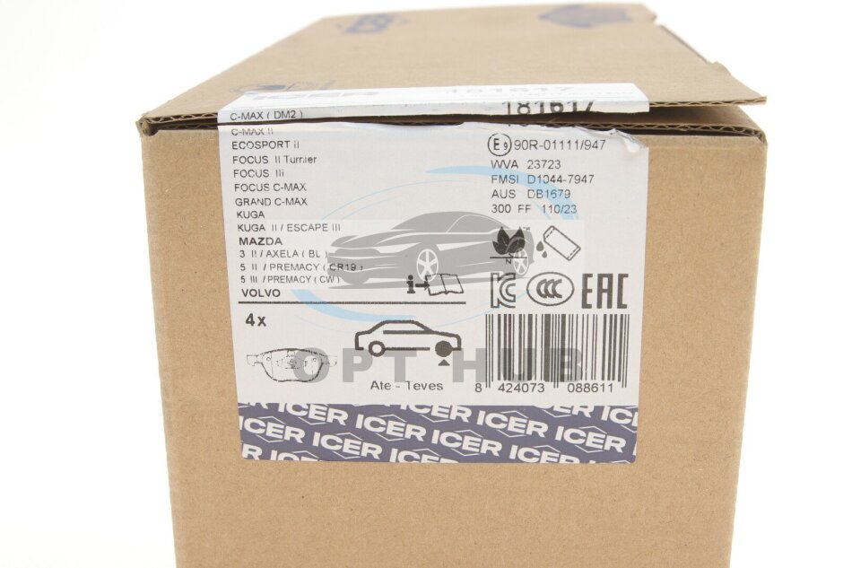 Колодки гальмивни (передни) Ford Transit Connect/Kuga 08-/Focus/Mazda 3/5/Volvo C30/S40/V50 03-/V4 UA63 ICER