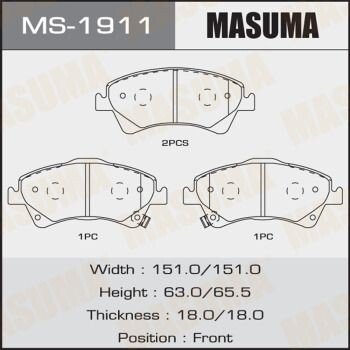 Колодки тормозные передние Toyota Auris (06-15), Avensis (08-), Corolla (06-10) (MS-1911) MASUMA