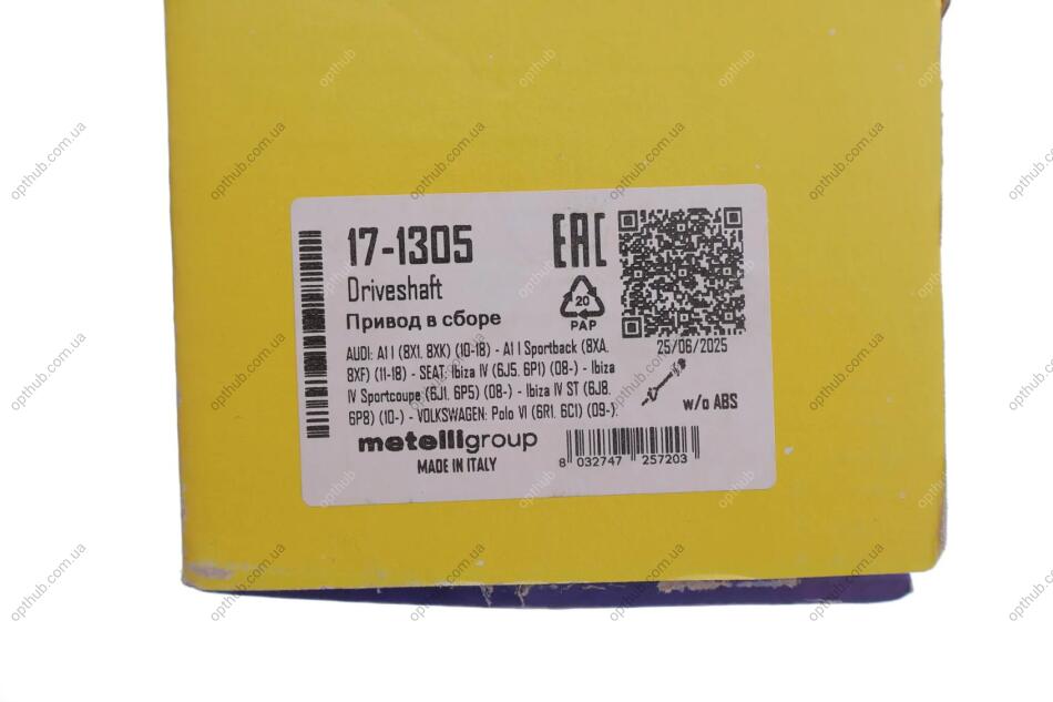 - Metelli 17-1305 подходит к маркам/моделям авто: