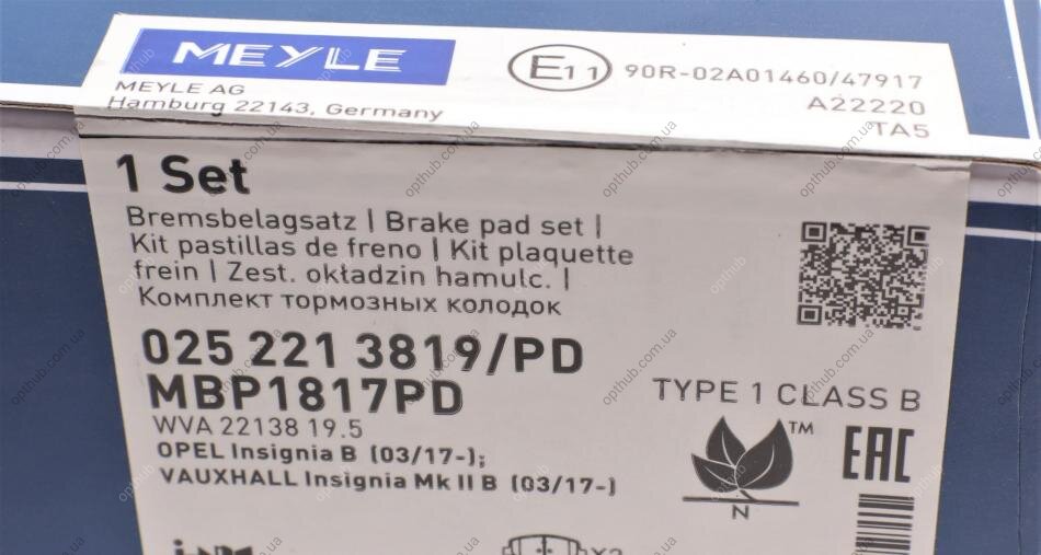 Проверочное значение: ECE R90 APPROVED