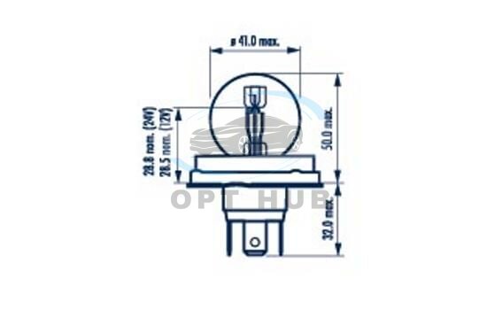 Автолампа R2 24V 55/50W P45t Standard (opt-om) NARVA