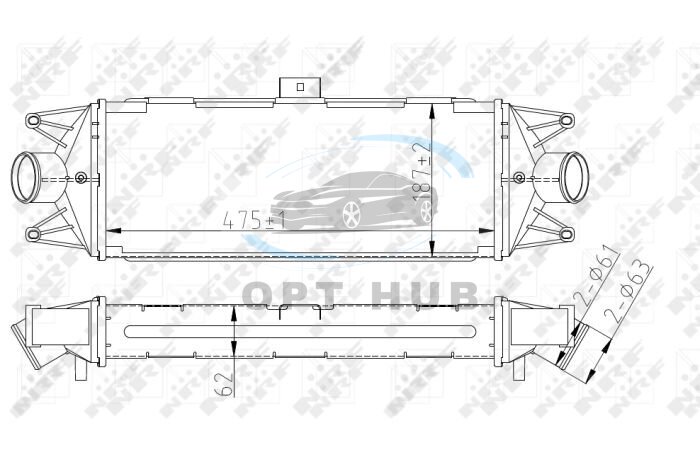 Радиатор интеркулера Iveco Daily III/IV 2.3D-3.0D 99- (opt-om) NRF