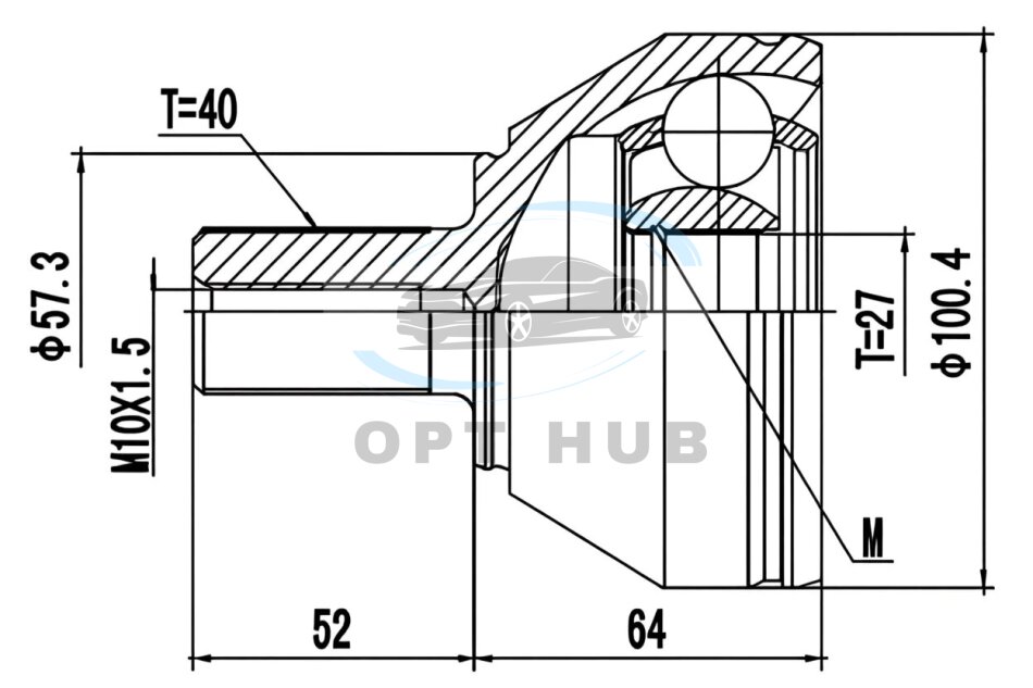 Внутренне зубчатое соединение со стороны колеса: 27