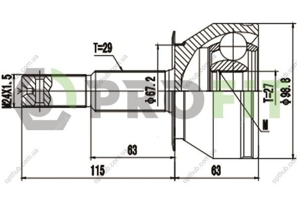 Внутренне зубчатое соединение со стороны колеса: 27
