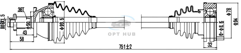 Пиввись ПРИВОДНОЙ ВАЛ К-Т SKODA FABIA 99-14. ROOMSTER 06-15. VW POLO 01-. SEAT IBIZA 02-09. CORDOBA 02-09 ПРАВ.