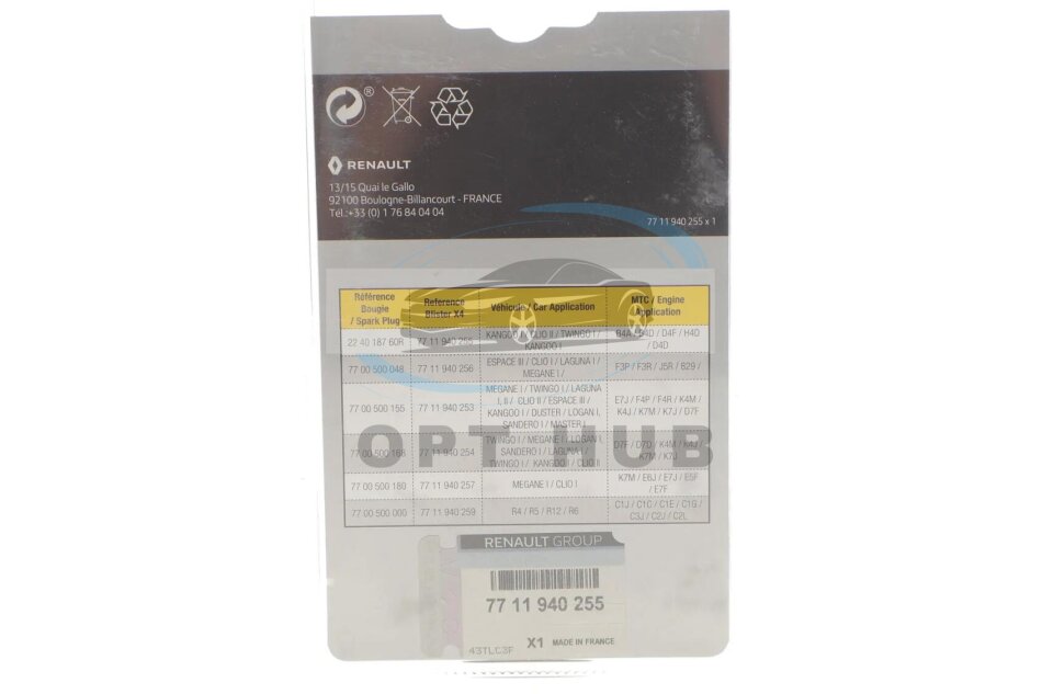 - RENAULT 7711940255 подходит к маркам/моделям авто: