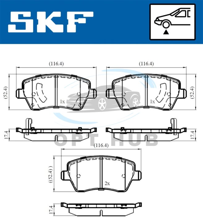 Колодки тормозные дисковые (комплект 4 шт.)) NISSAN MICRA, NOTE SKF