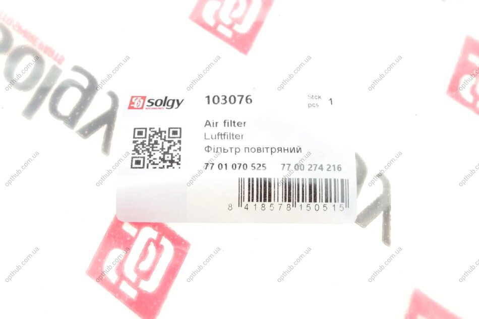 Фильтр повитряний Renault Kangoo 1.4 97- (без картонной упаковки) UA63 Solgy