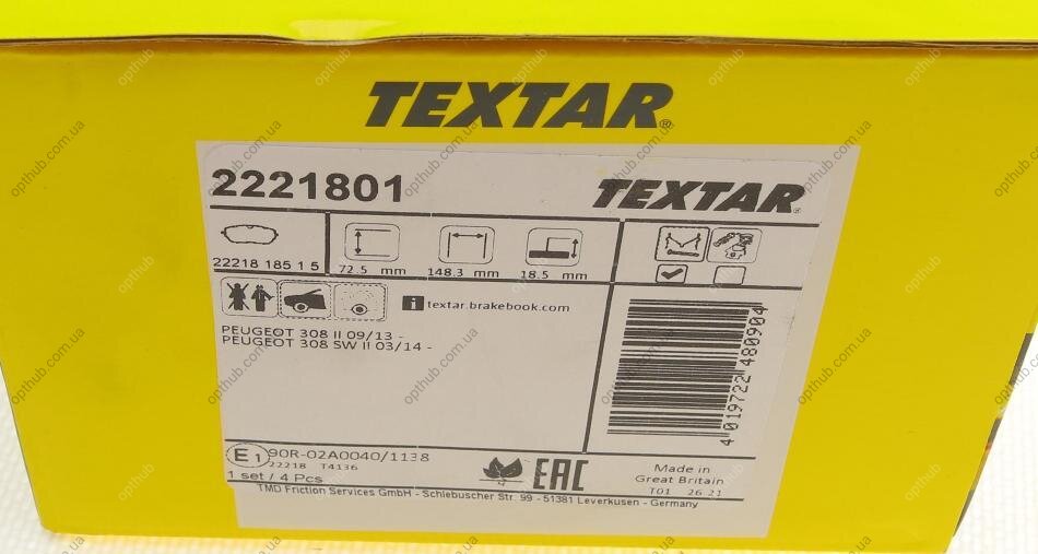 - TEXTAR 2221801 подходит к маркам/моделям авто: