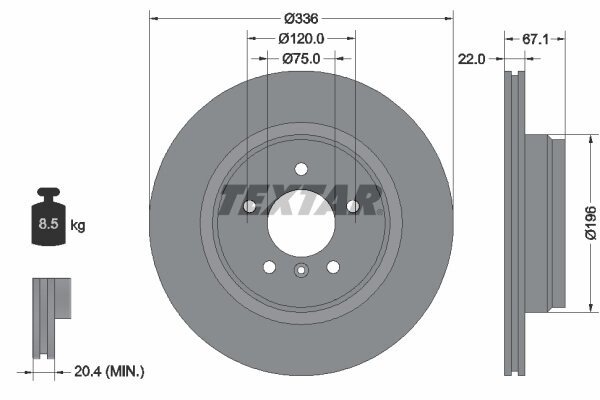Диск гальмивний (задний) BMW 3 (E90/E91/E92) 2.5-3.0/2.0d 04-11 (336x22) PRO+ UA63 TEXTAR