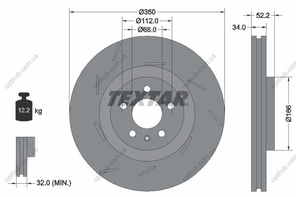 Диск гальмивний (передний) Porsche Macan 14- (L) (350x34) PRO+ (opt-om) TEXTAR