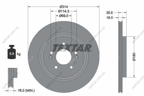 Диск гальмивний (задний) Hyundai Santa Fe 18- (314x18) PRO (opt-om) TEXTAR