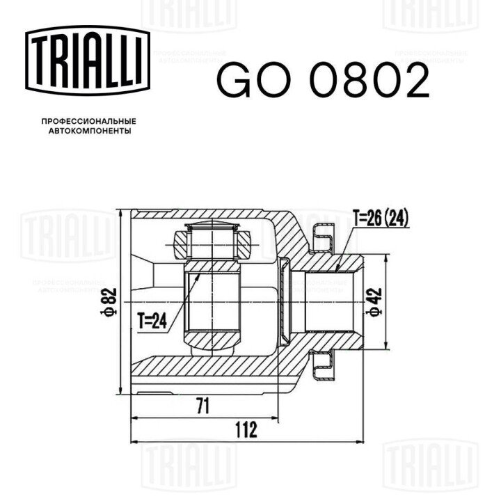 ШРУС внутренний правый Tucson 2.0/2.7 (04-) MT (зов:26(24)/вн:24) (GO 0802) Trialli