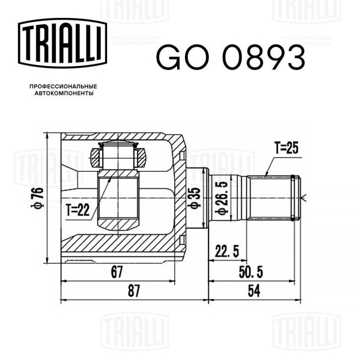 ШРУС внутренний Getz 1.3/1.4/1.6 (02-) МКПП (зов:25/вн):22) (GO 0893) Trialli