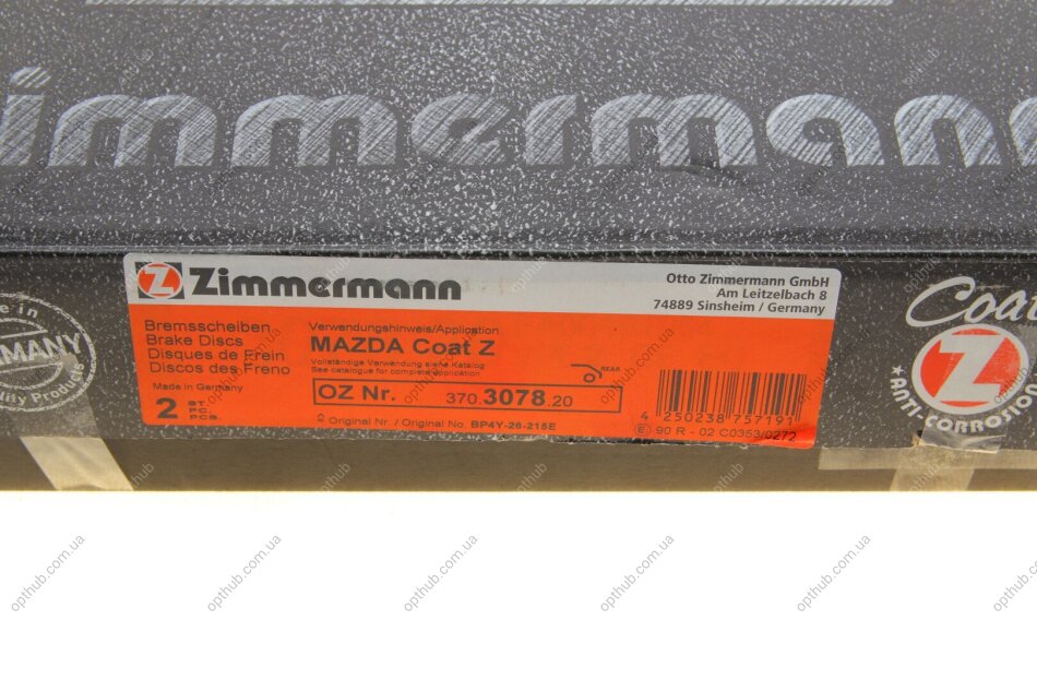 - ZIMMERMANN 370.3078.20 подходит к маркам/моделям авто: