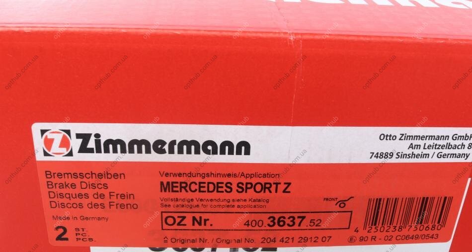 - ZIMMERMANN 400.3637.52 подходит к маркам/моделям авто: