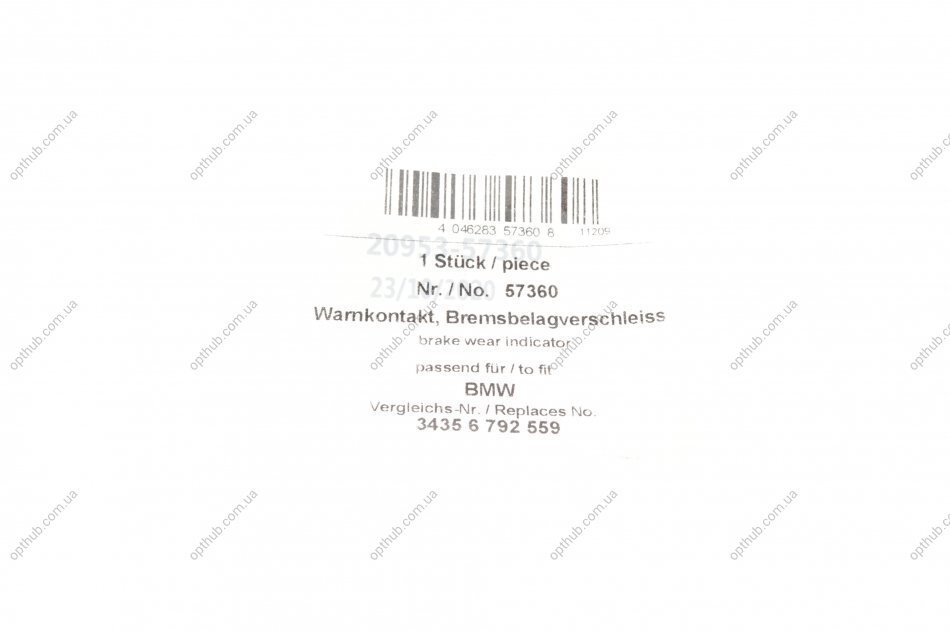 Датчик зносу гальмівних колодок (передніх) BMW 1 (E81/82)/ 3 (E90-93) 04-11 (L=650mm) (opt-om) AIC