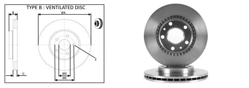 Тип гальмівного диска: вентильований