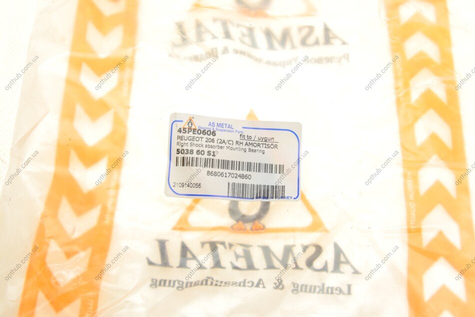 Подушка амортизатора (переднього) + підшипник Peugeot 206 98- (R) (opt-om) ASMETAL