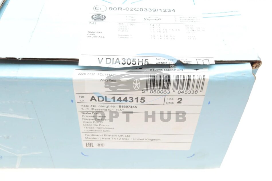 Диск гальмівний передній FIAT Doblo II -22, Opel Combo D -18 (вир-во Blue Print) ADL144315 C.I.U