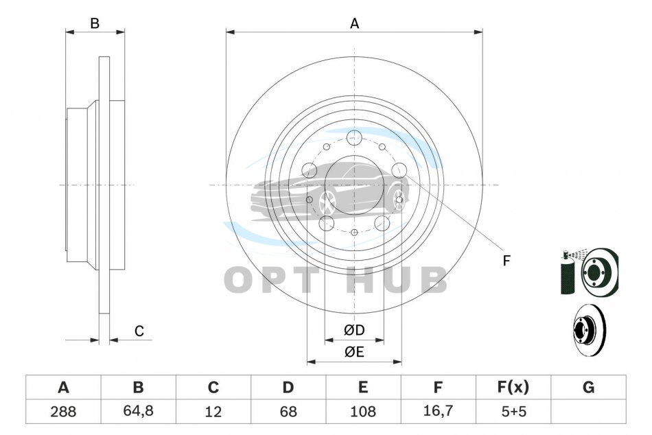 Товщина гальмівного диску (мм): 12