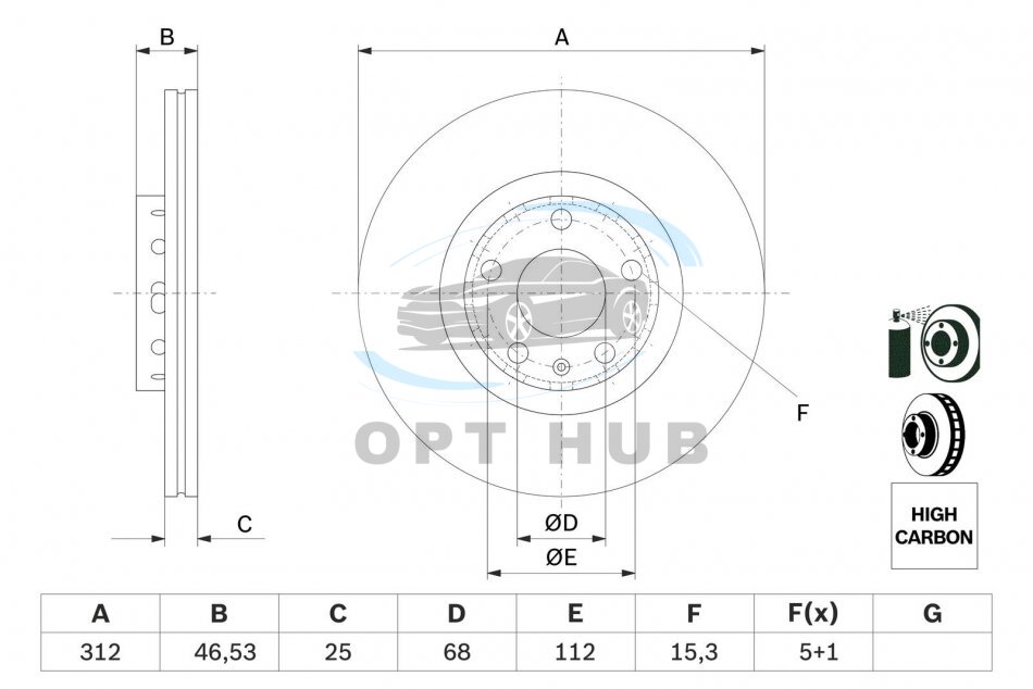 Тип гальмівного диска: із зовнішньою вентиляцією