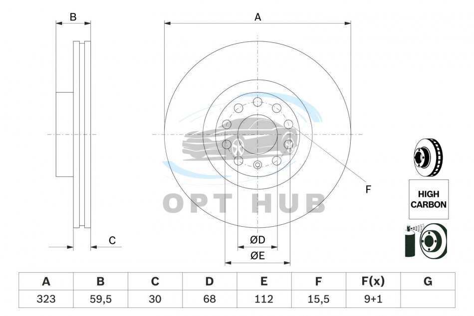 Тип гальмівного диска: із зовнішньою вентиляцією
