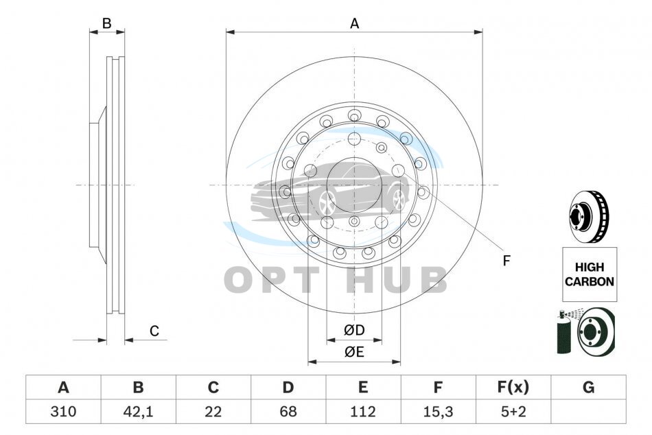 Тип гальмівного диска: із зовнішньою вентиляцією