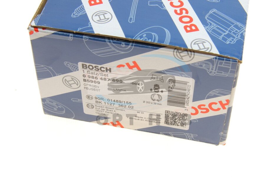 Колодки гальмівні (задні) Citroen C3/Peugeot 1007 02- (барабанні) (200x38) 0 986 487 690 (opt-om) BOSCH