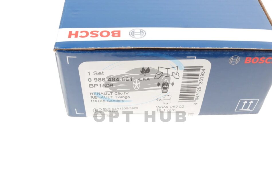 Колодка гальм. диск. DACIA LOGAN 1.2 1.5 2012-,SANDERO 2013-, CLIO IV 2012- передн. 0 986 494 6 BOSCH