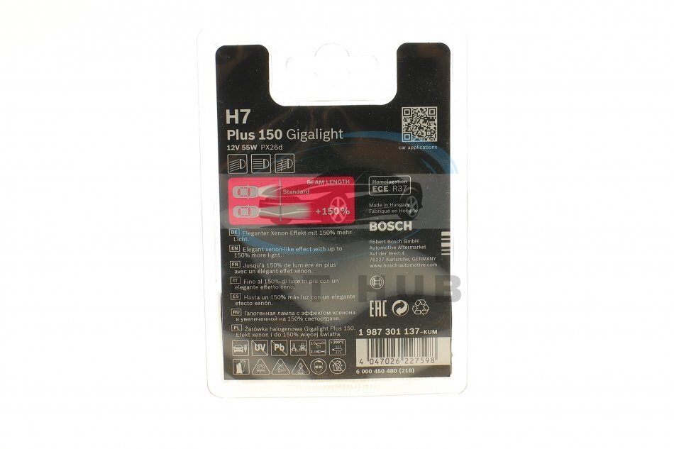 Лампа розжарювання H7 12V 55W PX26d GigaLight +150 (blister 1шт) BOSCH