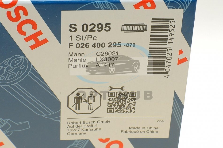 Аналоги "F 026 400 295 BOSCH":