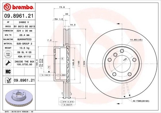 - BREMBO 09.8961.21 підходить до марок/моделей авто: