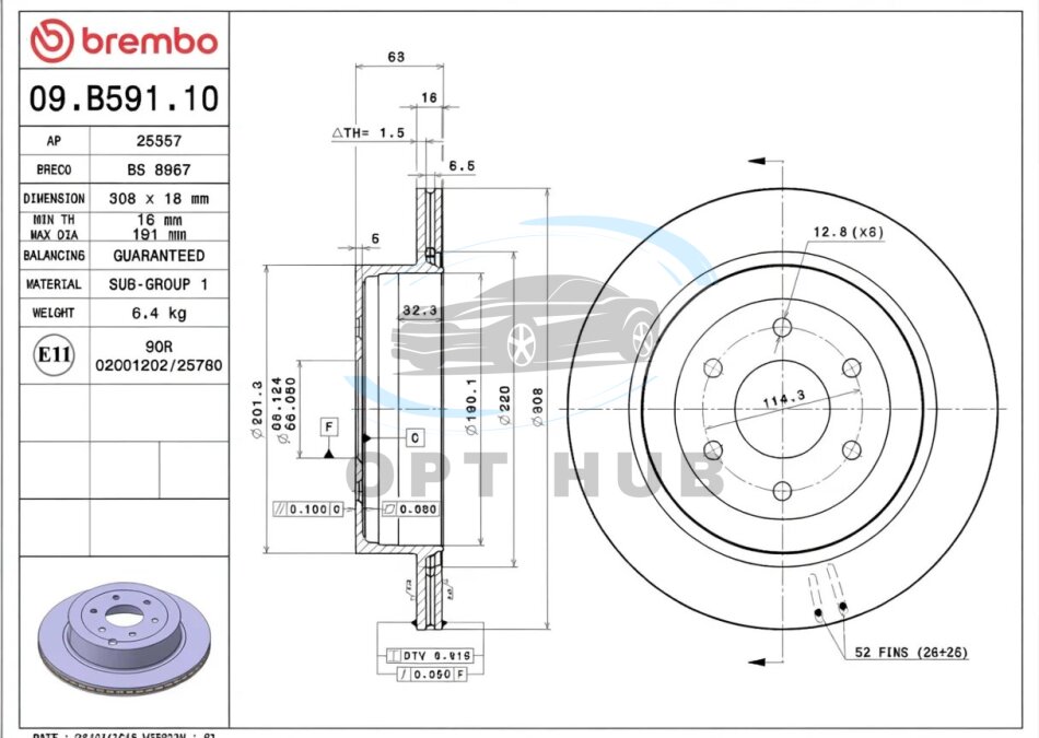 - BREMBO 09.B591.10 підходить до марок/моделей авто: