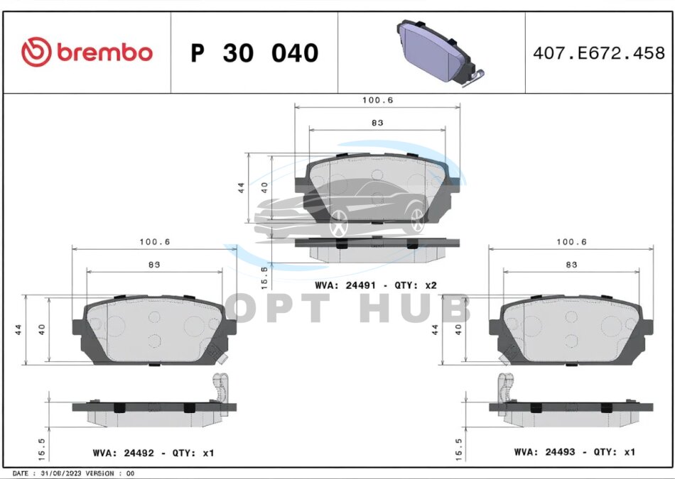 - BREMBO P30 040 підходить до марок/моделей авто: