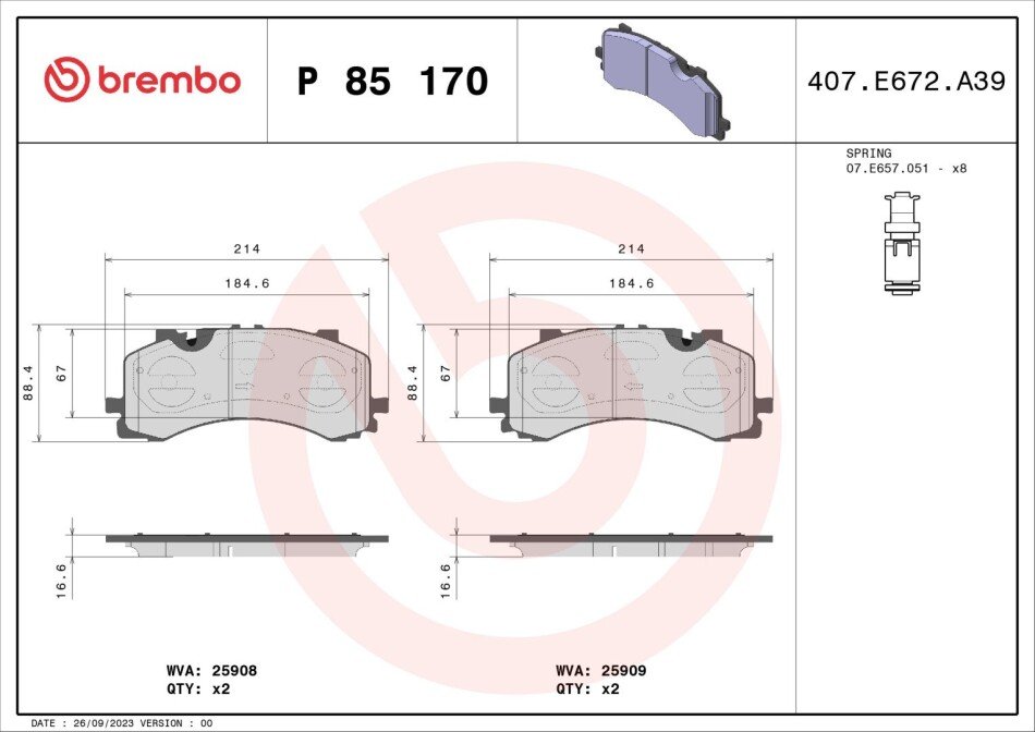 - BREMBO P85 170 підходить до марок/моделей авто: