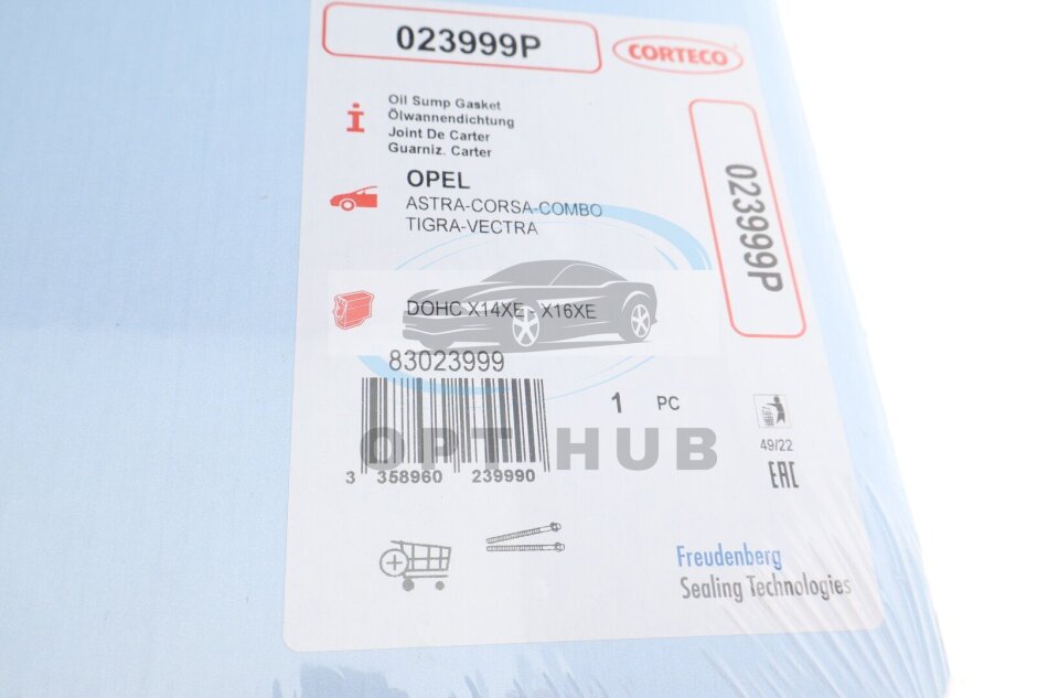 Прокладка масляного піддону двигуна OPEL Y16XE/Z16XEP CORTECO
