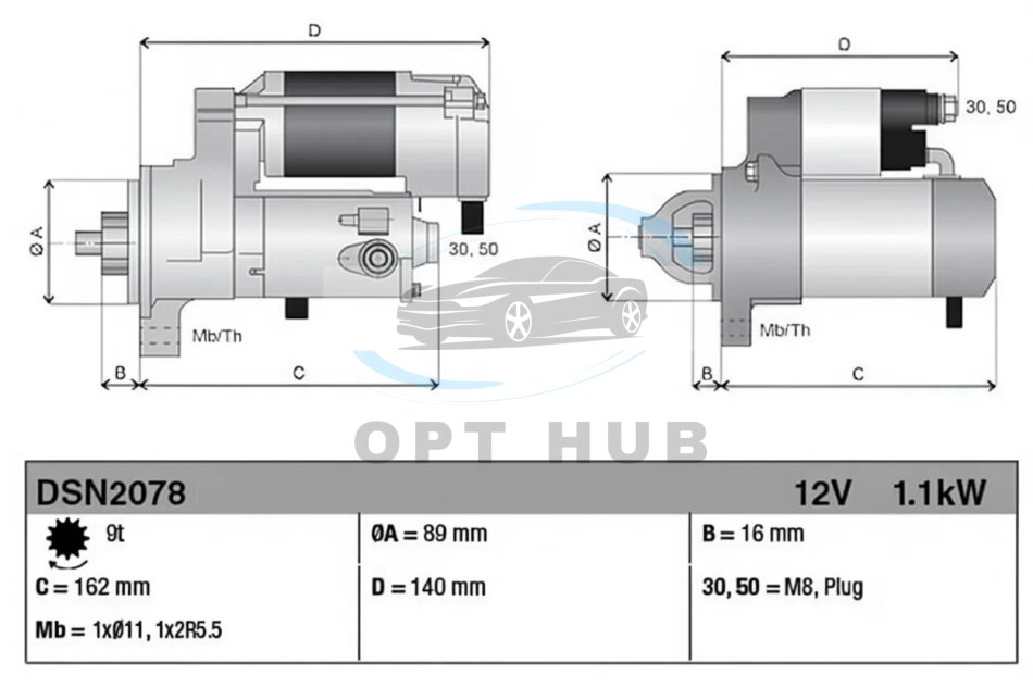 - Потужність стартера [кВт]