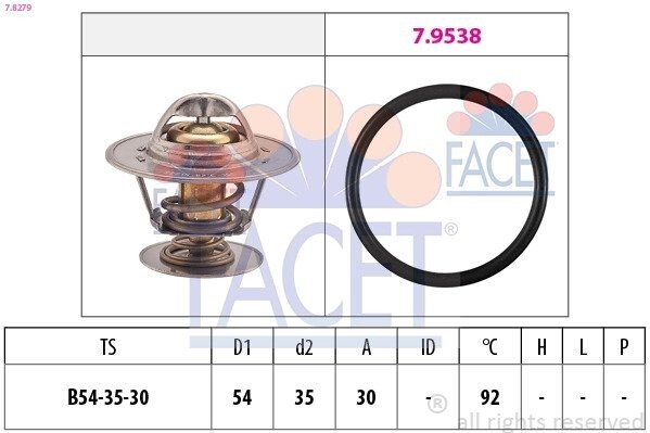 Термостат Opel Omega A/Ascona B/Ford Scorpio/Volvo S60/S70/V70 2.0-3.0 i/D -98 (92 C) (7.8279) FACET