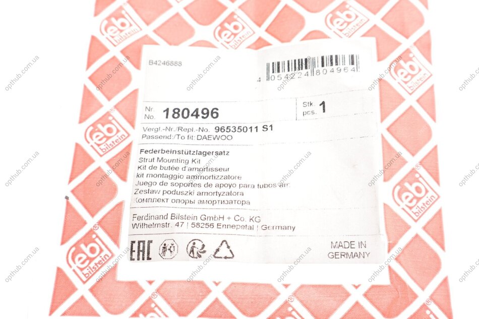 - FEBI BILSTEIN 180496 підходить до марок/моделей авто: