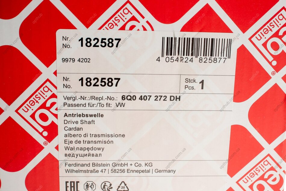 - FEBI BILSTEIN 182587 підходить до марок/моделей авто: